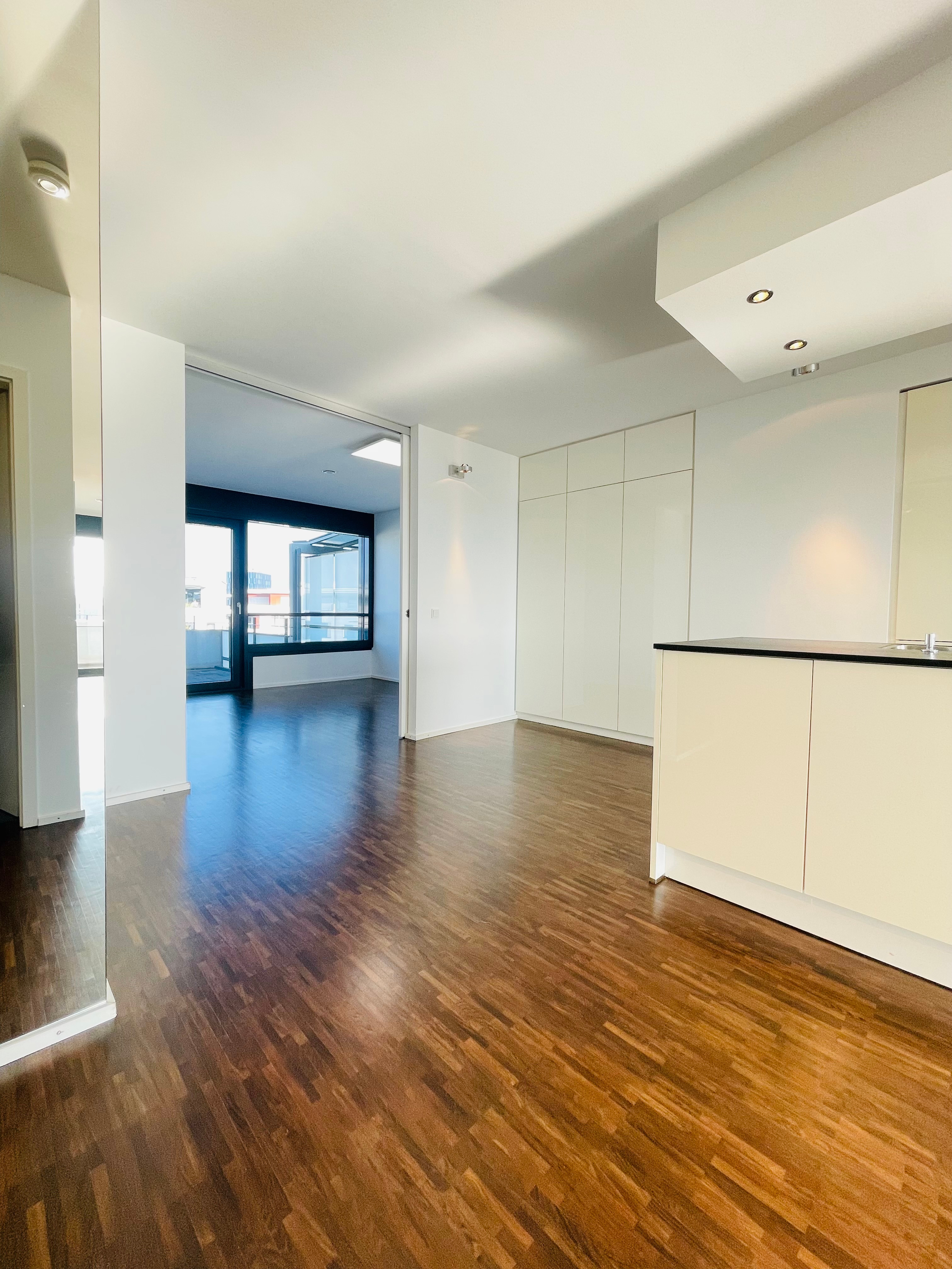 Ideal für zwei Personen, überzeugt die Wohnung mit einem offenen Wohn- und Essbereich, der dank einer stilvollen Einbauküche und direktem Zugang zur Terrasse ein harmonisches Wohngefühl schafft. Ein angrenzendes Zimmer kann durch eine Schiebetür flexibel abgetrennt werden und führt auf einen zusätzlichen Balkon mit Blick in den Innenhof.