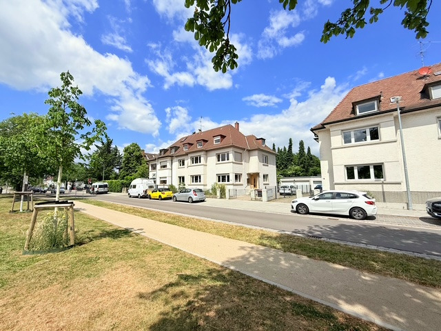 Das Wohnhaus mit nur drei Einheiten bietet ein ruhiges, persönliches Wohnumfeld. Besonders hervorzuheben ist die Ausrichtung: Vorne genießen Sie den Blick auf eine grüne Parkpromenade, hinten lädt der gemeinschaftlich nutzbare Garten zum Verweilen ein.